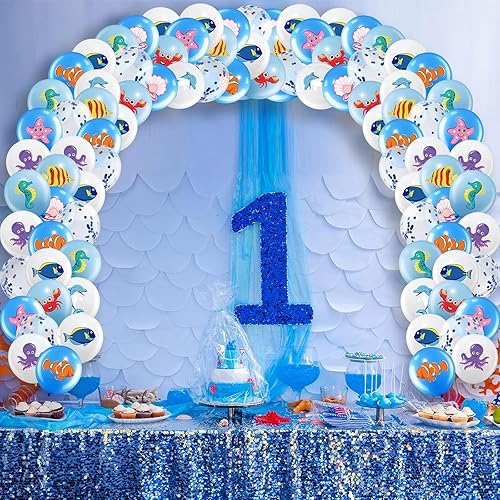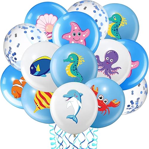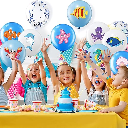 DazzJoy Lot de 20 ballons décoratifs animaux marins - Poisson, pieuvre, dauphin, crabe, hippocampe, poisson clown, étoile de mer, coquillages, ballons pour anniversaire, animaux marins, hélium
