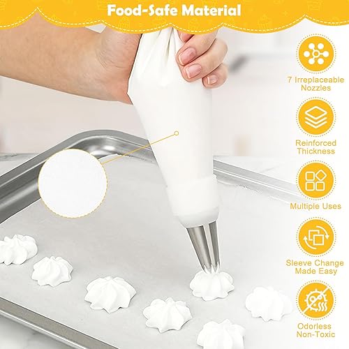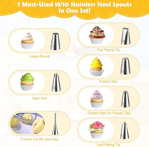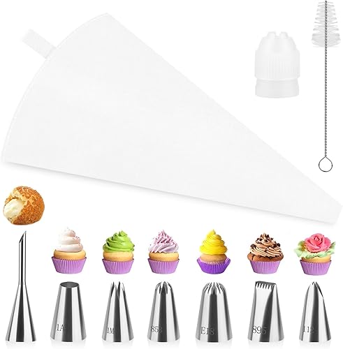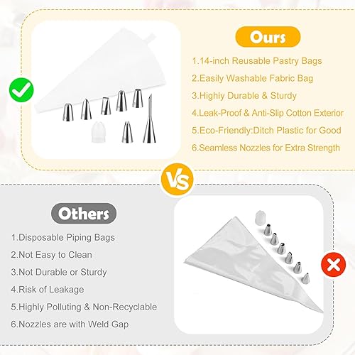 Lot de 11 poches à douille en coton de qualité supérieure (35 cm) avec sac réutilisable pour lave-vaisselle, douilles en acier inoxydable pour décoration de gâteaux, adaptateur et boîte cadeau
