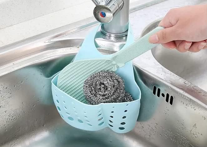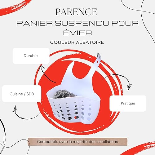 PARENCE - Panier Suspendu pour évier de Bain et Cuisine Accroche Robinet avec Support, Trous pour évacuation Sacs Robinet Rangement Passoire Organisateur Accessoires Couleur aléatoire