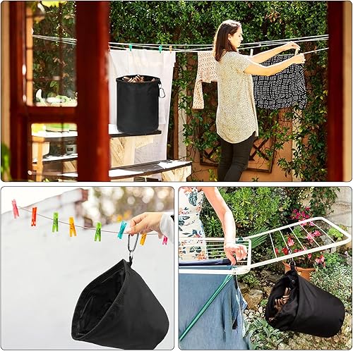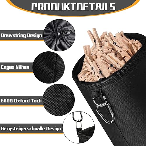 Sac à pinces à linge à suspendre - 15 x 20 cm - Noir - Avec mousquetons et fermeture à cordon - Étanche - Pour contenir jusqu'à 100 à 150 pinces à linge