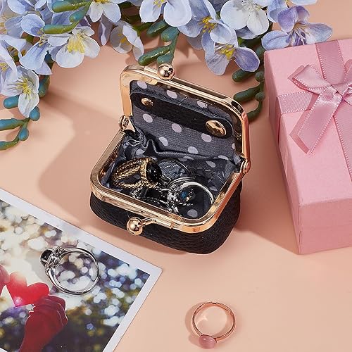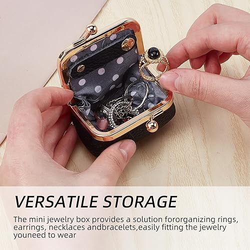 NICENEEDED Mini Boîte à Bijoux en Cuir Véritable Étui Organisateur de Bijoux de Voyage Porte Monnaie Vintage Portable avec Fermoir à Pression pour Femme