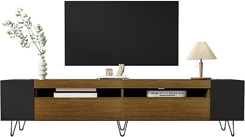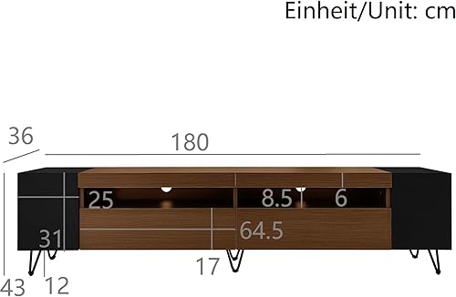 AEMOING Meuble TV moderne, aspect bois - Longueur 180 cm (noir)