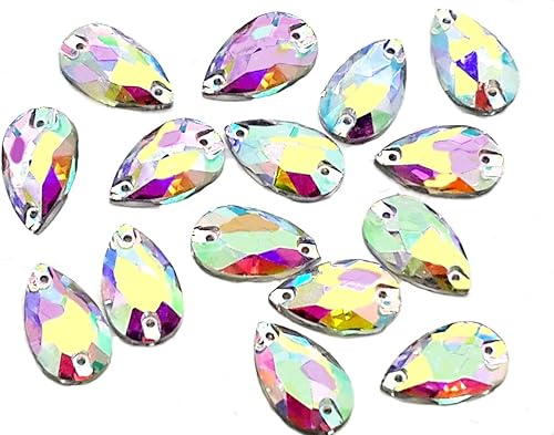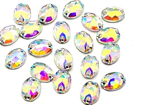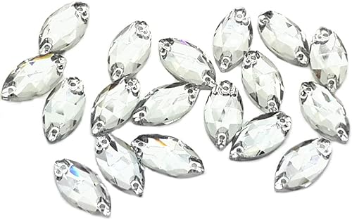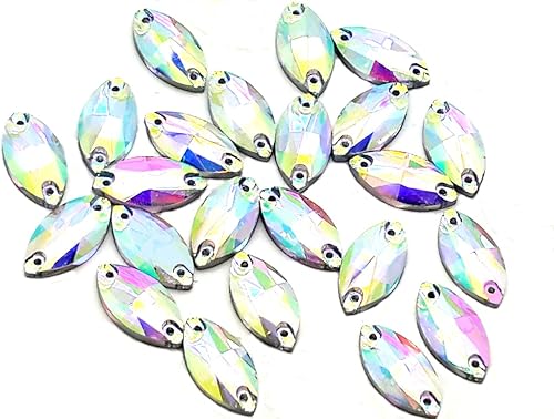 Eimass® 3533 Lot de 10 strass à coudre en verre taillé (17 x 32 mm, cristal AB Navette œil de cheval)