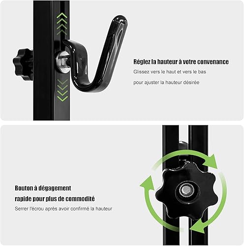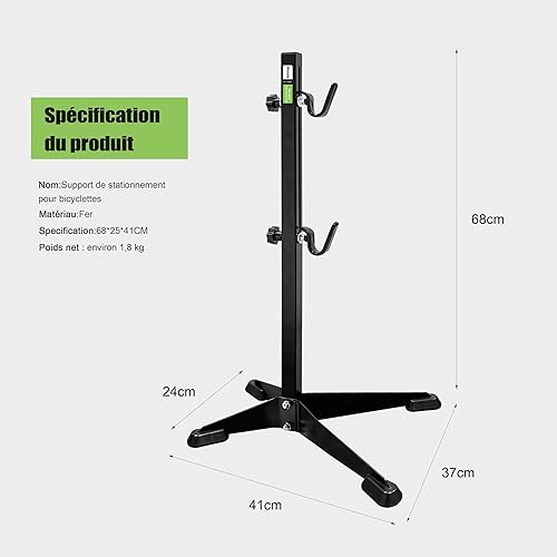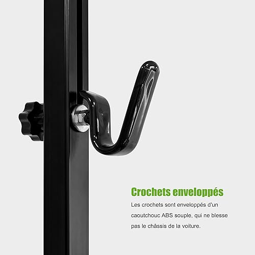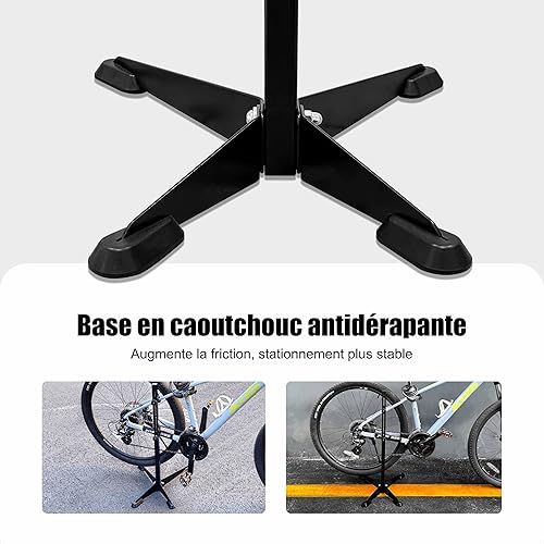 Mimoke Support de vélo réglable avec crochet en caoutchouc, robuste et résistant aux rayures. Design peu encombrant pour un entretien facile et un stationnement sécurisé (noir)