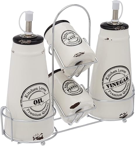 Tognana Urban Chic, Set Huilière, Acetière, Salière, Poivre, Céramique, Blanc et Noir