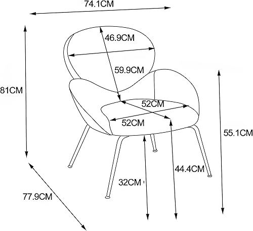 LULUWA Teddy Chaise de dressing avec pieds en métal en velours, tissu rembourré doux, accoudoir caractéristique, chaise de loisirs, moderne, adaptée au salon et à la chambre à coucher, chaise de