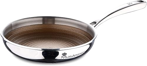 MasterPRO Giro 3 - Poêle de 20 x 3,8 cm en acier inoxydable, anti-adhérent, manche ergonomique adapté à l'induction, sans substances toxiques, sans PFOA, Détails en doré