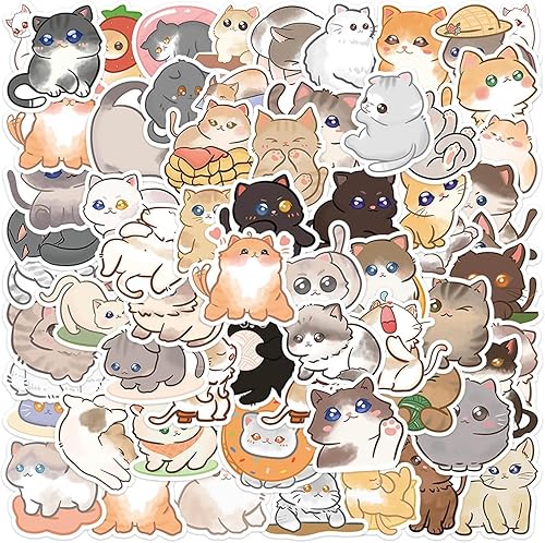 Lot de 60 autocollants amusants en motif chat kawaii pour bouteille d'eau, autocollants esthétiques pour scrapbooking, ordinateur portable, téléphone (A)