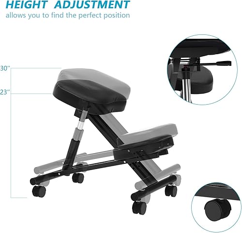 DlandHome Tabouret Genoux Ergonomique Siège Assis à Genoux Réglable Chaise avec Repose-Genoux Tabouret Ergonomique Roulant De Correction De Posture Structure en métal