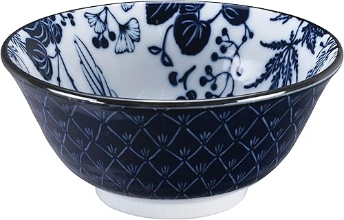 TOKYO design studio Bol bleu / blanc grue - Flora Japonica - 14,8 x 7 cm 500 ml