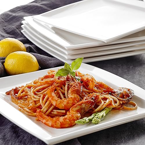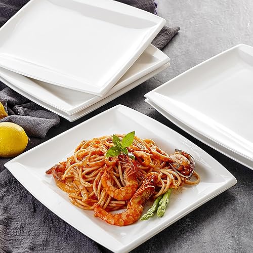 MALACASA Série Blance Assiettes Plates Carrée en Porcelaine, 18 pièces Grande Assiettes pour Dîner, 26,5 cm, Assiettes Service de Table Blanche, Micro-Ondes et Lave-Vaisselle