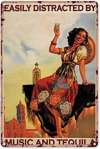kisoyo Plaque en métal « Facilement distrait par Hard Rock and Tattoos » - Décoration murale - 30,5 x 40,6 cm