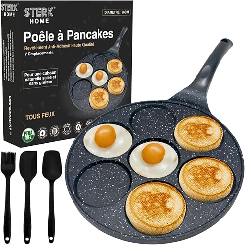 STERK HOME - Poêle à Pancakes 26cm - Poêle à Crêpes - Façon Pierre Noire - Revêtement Anti-Adhésif - Fonte Aluminium - Tous Feux dont Induction