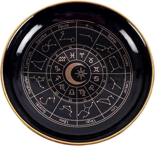 Something Different Wholesale Plateau à bijoux en forme de roue d'astrologie noire – Organisateur de bijoux en céramique avec signes du zodiaque, cadeau élégant et pratique pour les amateurs