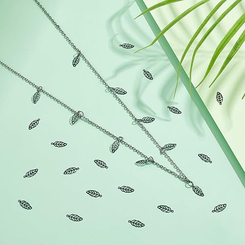 UNICRAFTALE 50pcs Breloques à Motif de Feuille Acier Inoxydable Breloque de Feuille Creuse Pendentif de Feuilles Métal pour le Printemps et L'Automne Boucles D'Oreilles Bracelets de Bijoux