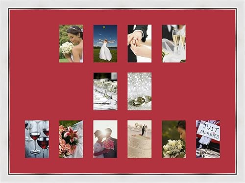 Cadres Photos pêle mêle multivues Vert Foret 12 Photo(s) 10x15 Passe Partout, Cadre Photo Mural 83x60 cm Blanc avec Filet Argent, 3.4 cm de Largeur