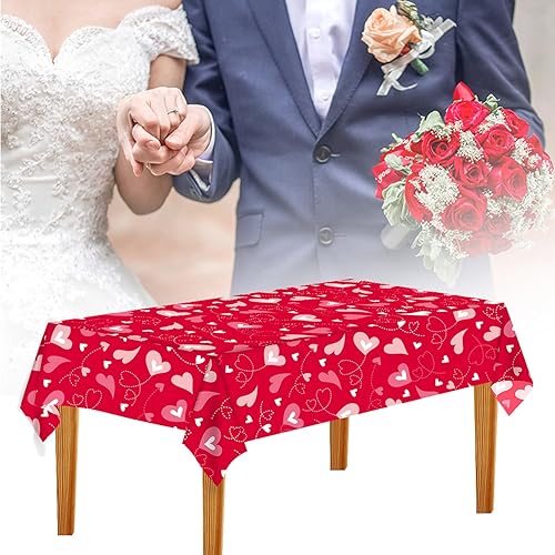VARACL Lot de 2 grandes nappes jetables en plastique pour la Saint-Valentin, un mariage, une fête d'anniversaire - Grandes nappes rectangulaires en vinyle - Motif cœur rouge