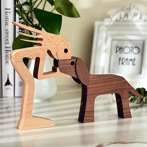 YUZHEDM en Bois Sculpture de Chien Ornement Figurines Ensembl Drôle de Chien Figurine Cadeaux Sculpture de Chien Convient pour Offrir à la Famille, aux Amis, aux Enfants Un Cadeau Chaleureux.