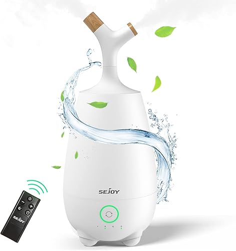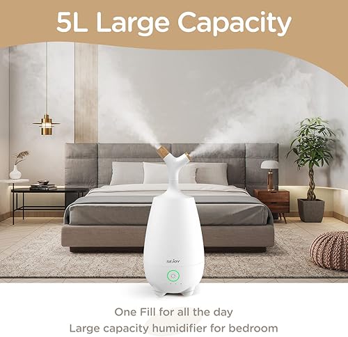 Humidificateur d'air Chambre 5L Humidificateur d'air Bébé Ultrasonique Humidificateur Silencieux pour Plante avec Diffuseur d'huiles Essentielles et Télécommande, Blanc