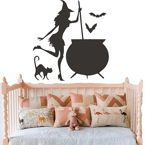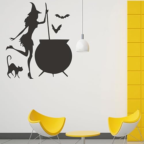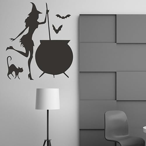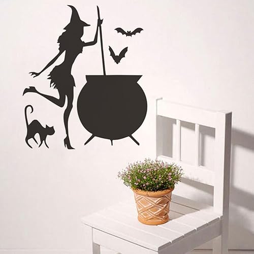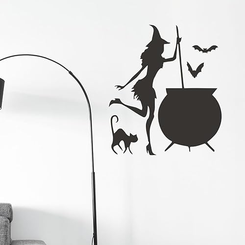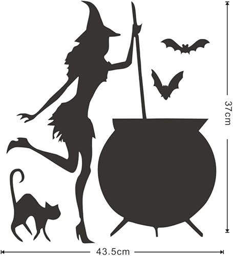 Housoutil Stickers Muraux Sorcière Halloween, Autocollants Fenêtre Sorcière Ludique Halloween, Autocollants Chauve-Souris Chat Sorcière, Pvautocollant Halloween pour Décoration De Murale