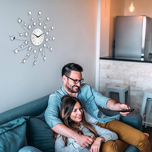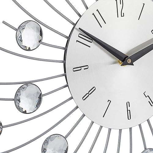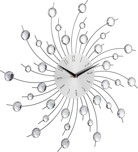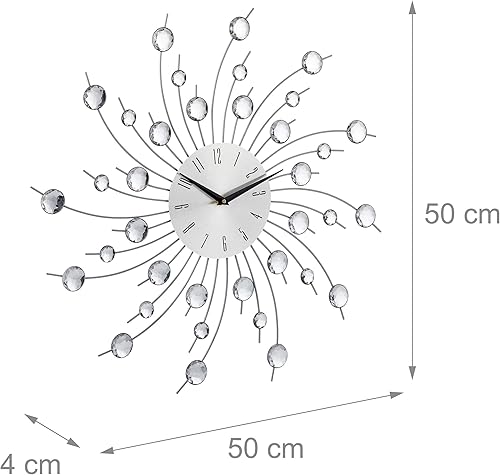 Relaxdays Horloge murale soleil avec perles strass diamant moderne cuisine salon sans Tic-Tac 50 cm, argent, 50 x 50 x 4 cm
