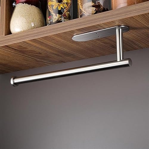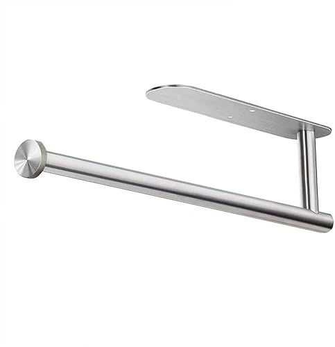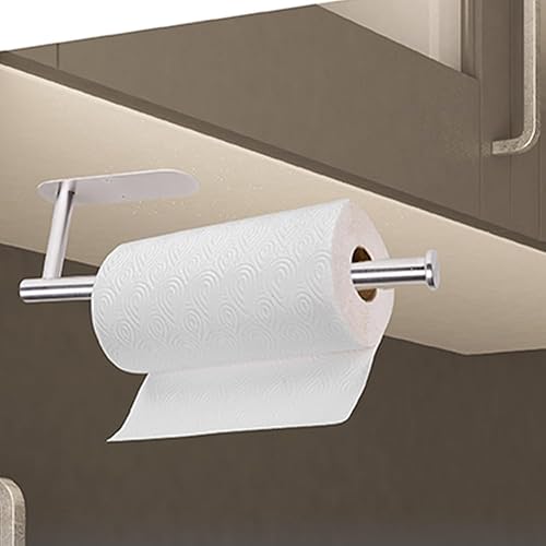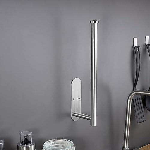katmerio Porte-rouleau d'essuie-tout mural sans perçage, 335 mm, auto-adhésif ou perçage, en aluminium, pour cuisine, salle de bain (argenté)