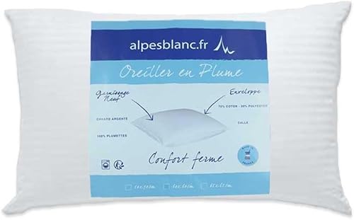 Alpes Blanc Oreiller Naturel en Plumes - Rectangulaire 45 x 70 cm