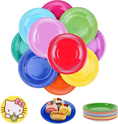 Nizirioo Assiettes en papier rondes colorées – 100 pièces, 7 pouces, pour fêtes et bricolage