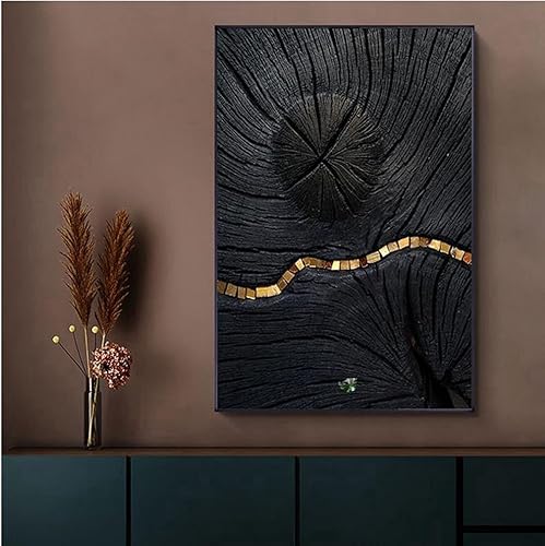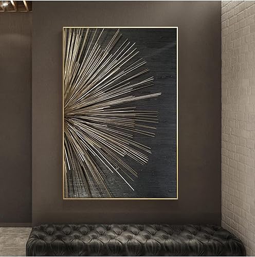 HEHGVCF Lot de 3 tableaux sur toile noir doré tableaux muraux salon abstrait or toile poster impression moderne art mural peinture photo sans cadre (or A, 50 x 70 cm)
