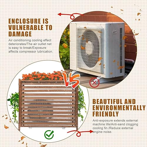 MDXVRKYBC Cache Climatiseur Exterieur Cache Clim Bois Couvre-radiateur Plantes Et Fleurs pour L'extérieur Brise-Vue pour Cacher Le Climatiseur