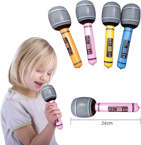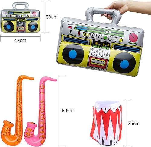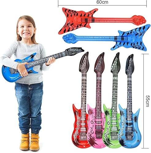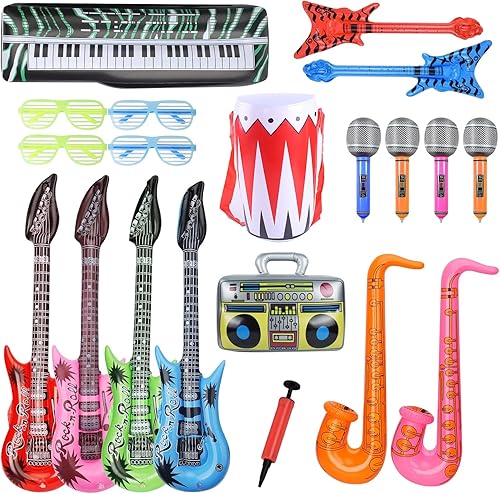 UBETTER Rock Star Toys Lot de 20 instruments gonflables - Décoration de carnaval, fête, pour gonfler, basse, saxophone, microphones, claviers, batterie et lunettes de fête pour enfants