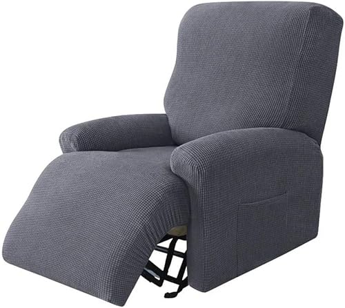 pipisweet Housse de canapé extensible tricotée anti-rayures pour fauteuil relax et animaux domestiques 1/2/3/4 places (Grille-gris, 1 place)