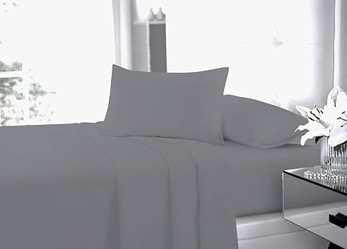 Drap plat en percale de 180 fils au pouce carré, facile d'entretien, doux, résistant au rétrécissement, aux plis et à la décoloration, infroissable en polycoton (gris, lit simple)