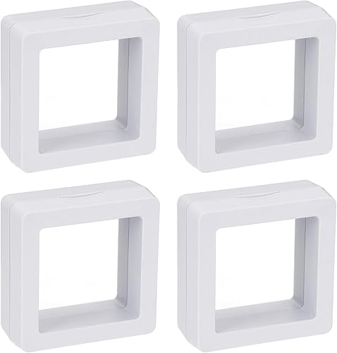sourcing map Lot de 4 présentoirs flottants 3D pour bagues, colliers, bracelets, boucles d'oreilles - 5 x 5 x 2 cm - Blanc