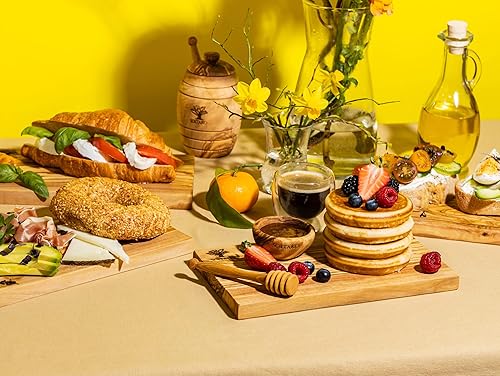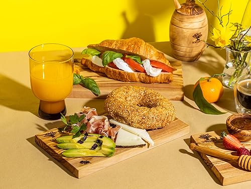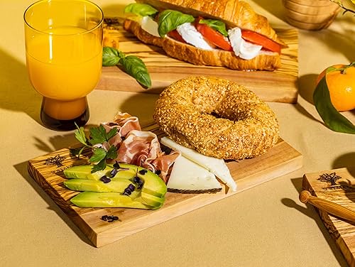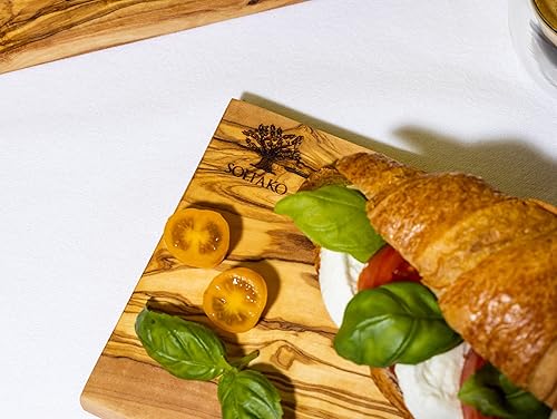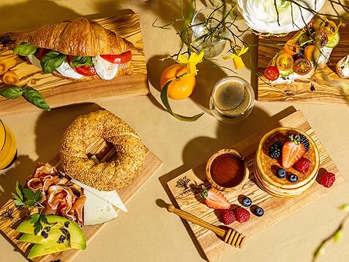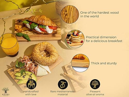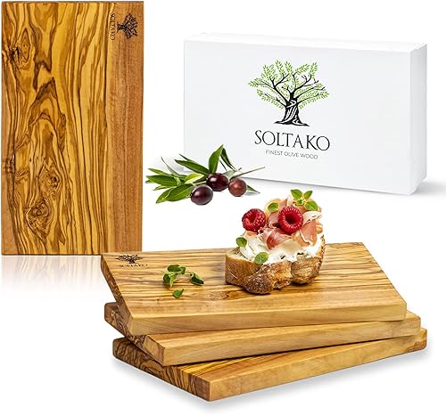 SOLTAKO Planchette de petit déjeuner en bois d´olivier, lot de 4 planches de petit déjeuner, planche de service en bois, 23x13 cm, mini plateau de fromage, petite planche de charcuterie