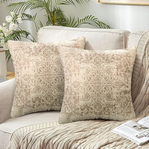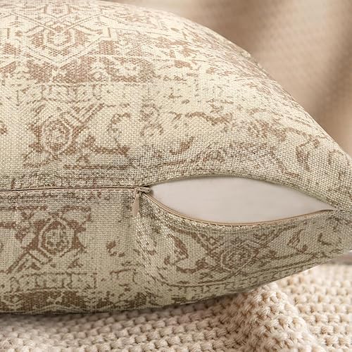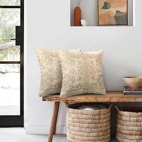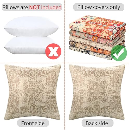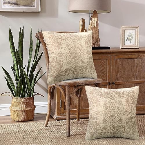 Chicamy - Housse de Coussin Rétro 2 Pièces 50 x 50 cm Lin Boho Ethnique Vintage Motif Coussins Décoratifs pour Chambre à Coucher Salon Canapé Maison