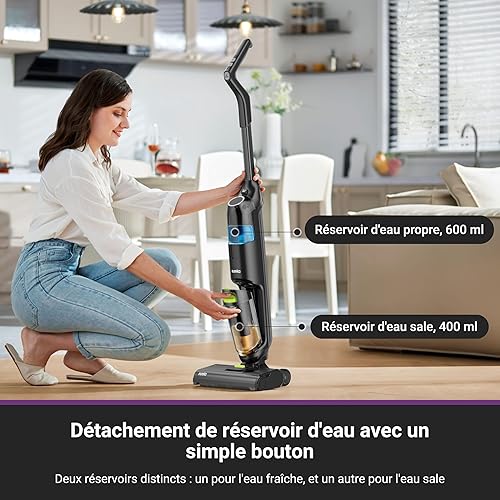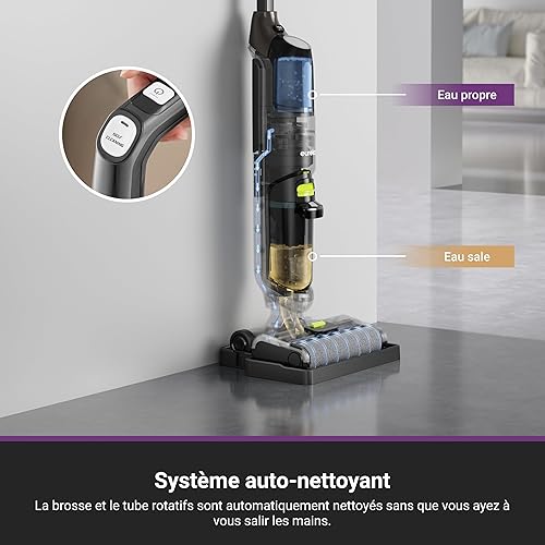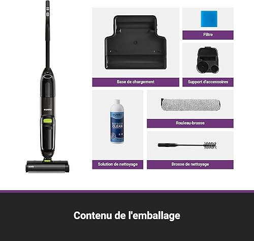 Eureka RapidWash NEW630 Aspirateur Laveur sans Fil,Aspirateur Balai Sec et Humide Inclinaison à 170°,Séchage Air Chaud 60℃,Anti Enchevêtrement,Autonomie 38 Mins,Aspirateur Eau et Poussière Sols Durs