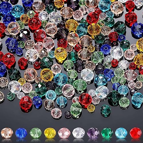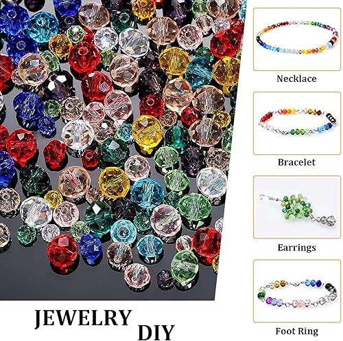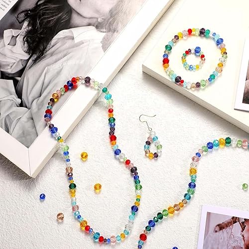 Lot de 800 Perles de Verre en Cristal à Facettes 4/6/8 mm - Boîte de Rangement Incluse - Pour Fabrication de Bijoux, Colliers, Bracelets, Boucles d'Oreilles