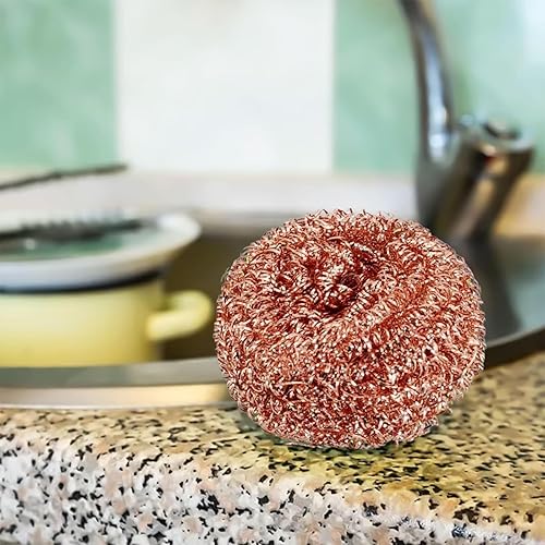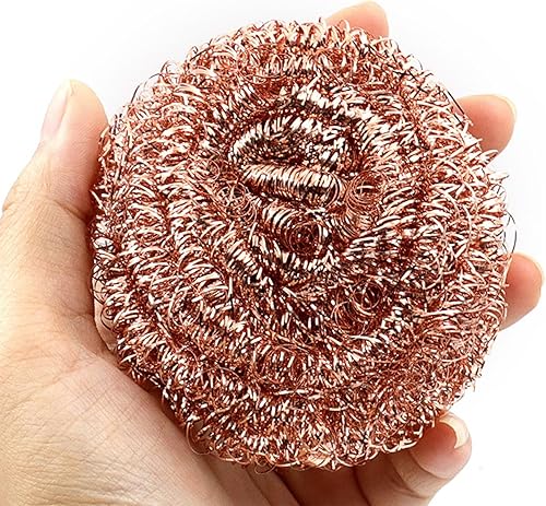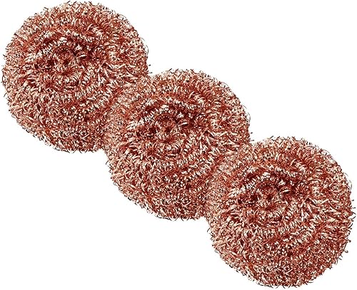 Lot de 3 tampons à récurer recyclables en fil métallique – Cuivre en spirale – Longue durée de vie pour le nettoyage – Brosse à récurer robuste