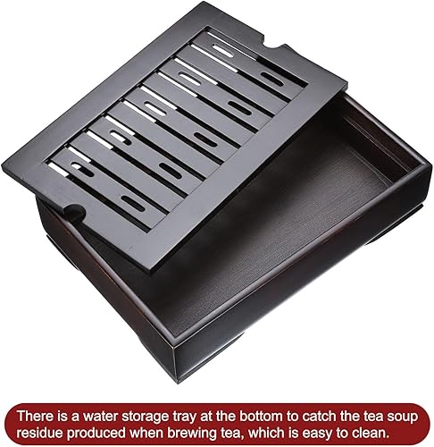 sourcing map Plateau à thé chinois en bambou Gong Fu 35,1 cm Plateau à thé classique en bambou Table à thé vintage avec boîte de rangement d'eau pour boire du thé Marron