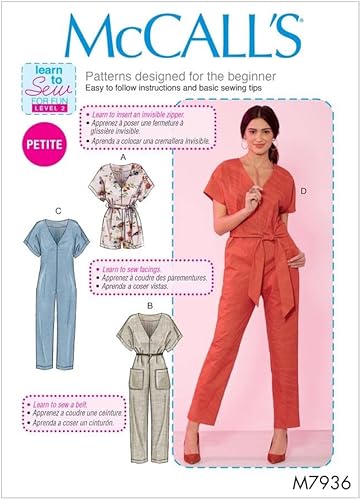 McCalls Patron de couture 7936 Combinaisons Y (XS-S-M)
