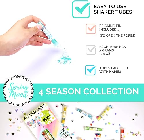ToysButty Poudre de Mica Kit 12 &52 Colorant Resine Epoxy Naturel,Belles Couleurs Florales en Tubes, Bombes de bain et Moule Resine Epoxy, Vernis Ongles, Maquillage (12 Mica Printemps)