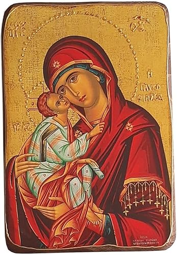 DELL'ARTE Articles religieux, icône sacrée bois Madonna avec enfant cm 20x14