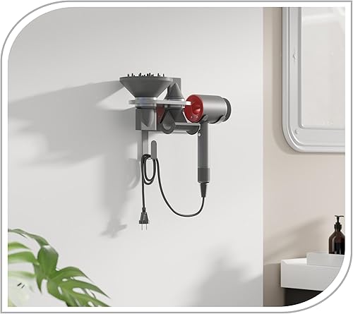 PureMounts® Support Mural pour sèche-Cheveux pour Dyson® Supersonic, Fixation magnétique, Gestion des câbles, capacité de Charge jusqu'à 5 kg, Coussinet en Silicone, Gris métallisé