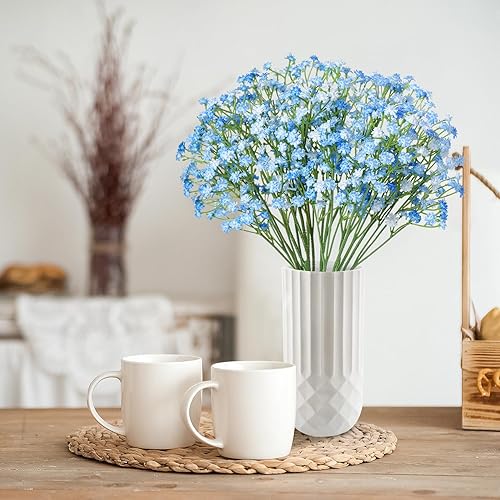 KUDLE Lot de 6 gypsophiles artificielles bleues - 52 cm - Fleurs artificielles - Bouquet de fleurs artificielles pour mariage, maison, décoration