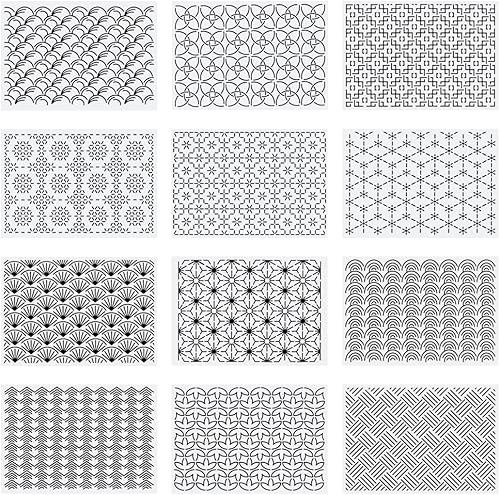 ORIGACH Lot de 20 pochoirs Sashiko 14 x 14 cm en plastique avec motifs japonais traditionnels pour dessiner des lignes géométriques pour matelassage et broderie à la main