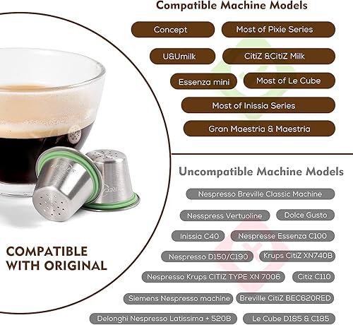 Capsules d'expresso rechargeables en acier inoxydable compatibles avec OriginalLine (2 dosettes + 120 couvercles)