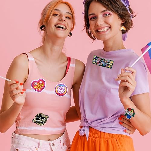 Qpout 12 Pièces Hippie Patchs Fer sur Patchs Vintage Signe de Paix Réparation Patch Décoratif pour la Conception de Vêtements Sac à Dos Vestes Jeans Chemise DIY Artisanat Décorations