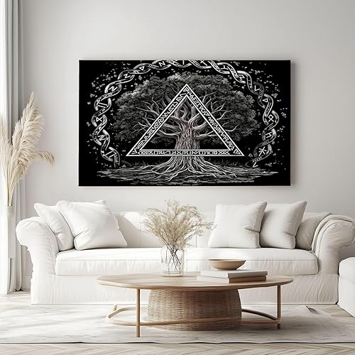 Peinture à l'huile Branches de Vigne Affiche Toile Art Mural Peinture, Tableau sur Toile Arbre de Vie Runique Viking pour Décoration de Salon Décoration d'intérieur 160 x 80 cm (L x l) Sans Cadre