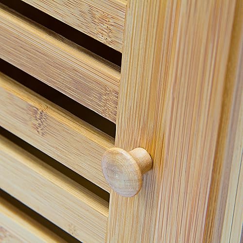 Relaxdays 10019205 Étagère salle de bain cuisine Porte refermable bois de bambou 5 étages Plateaux Meuble rangement HxlxP 140 x 36,5 x 33 cm, nature